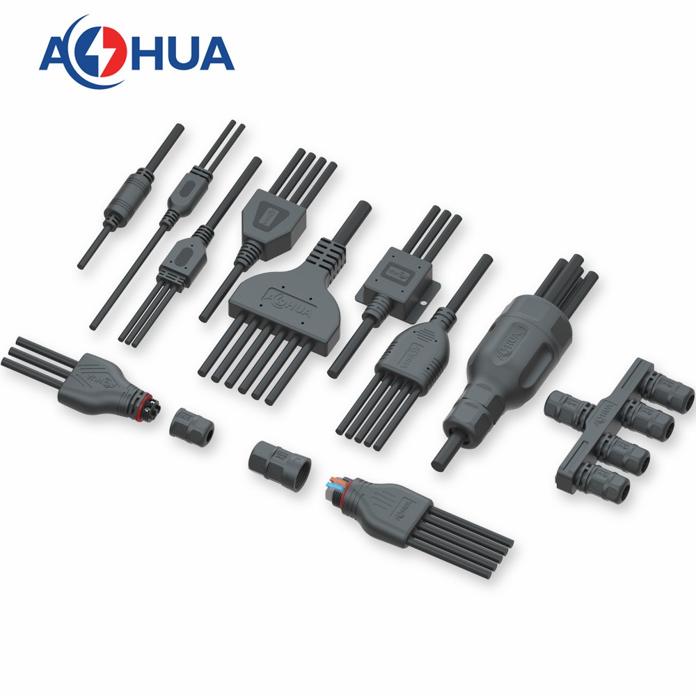 AHUA澳华公司专业生产LED防水插头连接器、路灯模组分线盒、工控防水公母接头、光伏航空插头、新能源防水电源连接线、植物生长灯连接线、畜牧养殖连接线、汽车线束。工厂自有模具制造、电线电缆押出、大型注塑、五金制造,双生产基地,可来图来样个性化定制,国家高新技术规模企业!