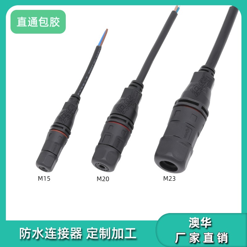 AHUA澳华直通包胶防水接头M15航空插头0.5平方照明防水线